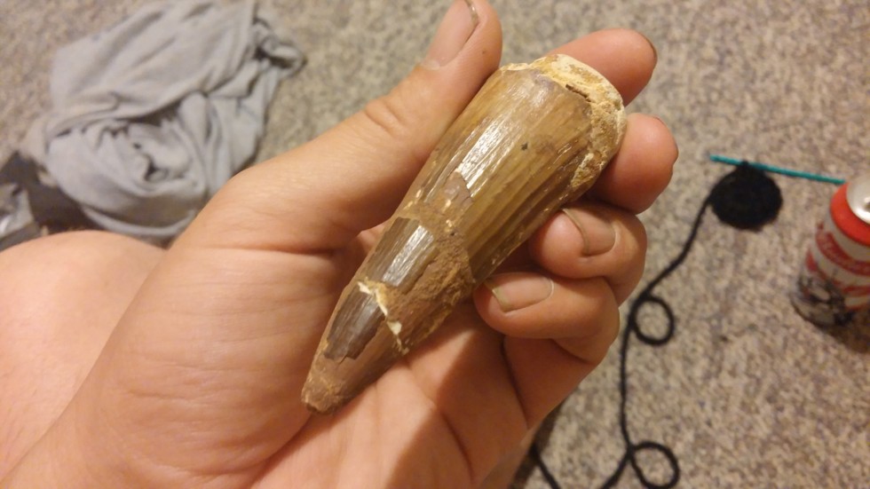 And this tooth.Spinosaurus. bigger then t-rex.!! You can see the battle in Jurassic park 3 .lol