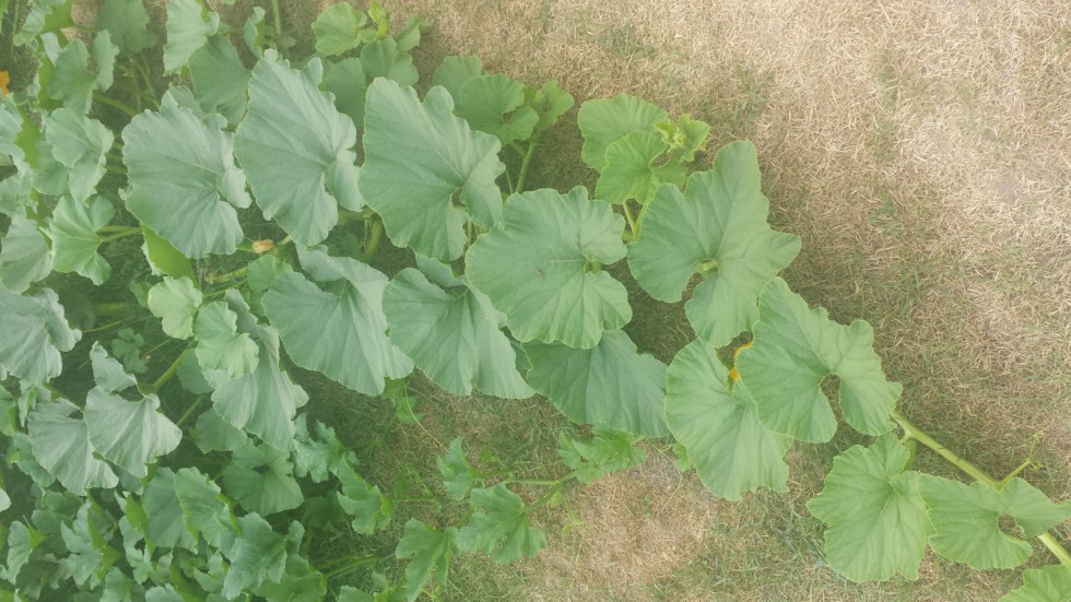 | The main vine after the big pumpkin in the last picture (30DAP) has grown 10-12 ft after the kin, should I cut the vine back or just cut the tip or leave it |  |  |