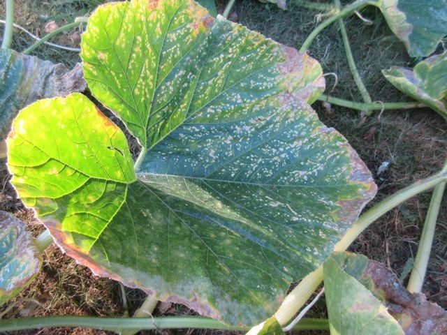 Stage 3 - The yellow takes over much of the leaf and initial spots and edges turn brown.