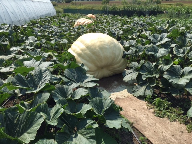 Here is the row of pumpkins outside the Tunnel. They are soaking up the sun today. Amazing how warm 74 and sunny feels like. The 2036 in front is Day 54, 2032 in the middle is Day 59 and 1738 in Back is Day 60 today. The plants, despite looking ok in this picture are actually in terrible shape after a week of cold winds. The Day 60 numbers are going to suck, that I am sure of.