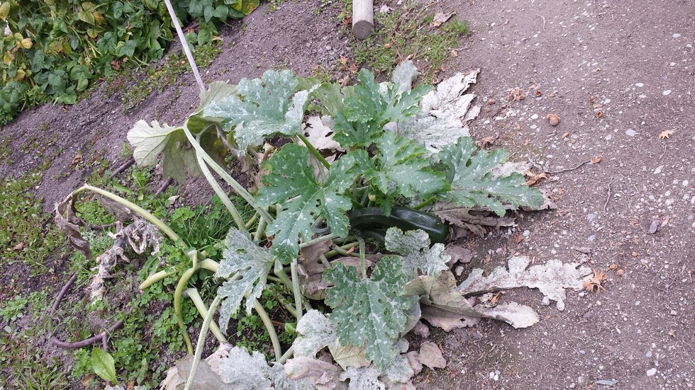 This zucchini plant is the only reason I have hope for the 1043. It has been decimated by powdery mildew yet the fruit continues to increase in size....daily!