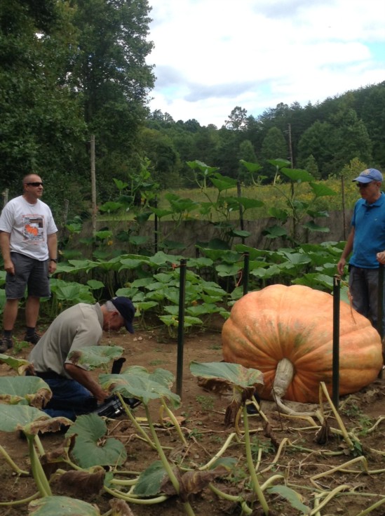 My buddy Sam Lovelace sent a reporter from a local TV station our way. David Weatherly with Fox-8 came to the patch to shoot some footage to help promote the Yadkin Valley Pumpkin Festival which will be held September 26th. David is interviewing my brother, Bruce in this photo. Bruce is a doctor, but he will work like a dog in the pumpkin patch. We both cut our teeth in the tobacco fields of NC where we would start at 7am and go until 10pm some days, then get up and do it again the next day. Those old tobacco fields taught us the value of hard work. Bruce gives a pretty good interview also.
