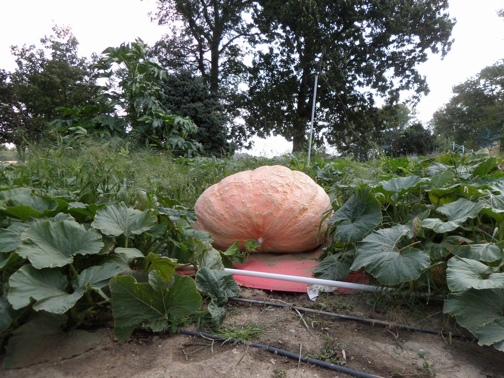 This pumpkin has grown without a main starting at DAP 18, can it reach 900 before Bengtsons, we wont know if it gets wider than the truck bed , could have been my first one over 1000.