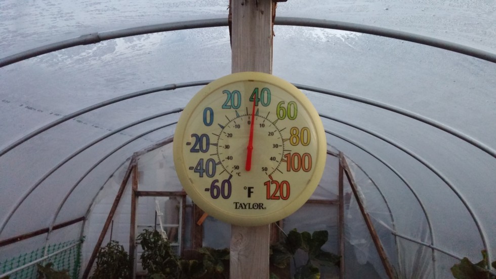 25 degrees outside the greenhouse this morning. I was surprised to see that a little electric heater keeped the temp almost 40.