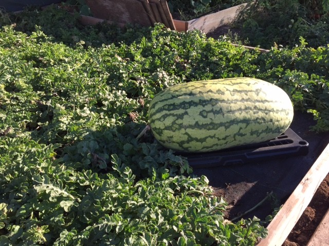 This is the 297 Kent x 291 Kent. As you can see the plants are really healthy. I got all my melons set way to late this year. I will do better at that next year. Hoping this one or the 267 end up a PB for me. They are actually growing very well yet so it is a shame to have to pick them. But, tis the season and it will probably freeze the next few nights so I will be done. Heavy frost last night, first of the year, which is late.
