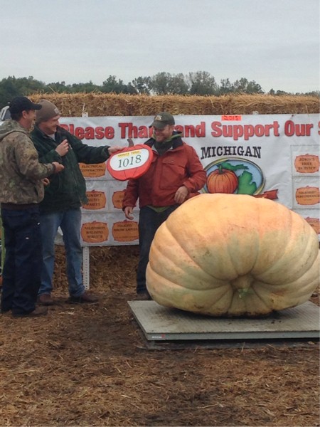 Byron Schommer and his 1018lbs pumpkin. 1st time over 1K.