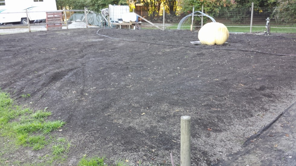 Ready for next year ! 1) all vines removed and taken to the dump, 2) whole patch weeded, 3) soil ppm meter tested and recorded 16 sites of the patch, 4) pH readings on same 16 sites, 5) soil sample taken at those sites to be sent to A&L Labs for analysis, 6) 4 tbsp. of Cabrio( pyroclostrobin) hose end sprayed over patch to try to kill any residual PM. 7) Miller time