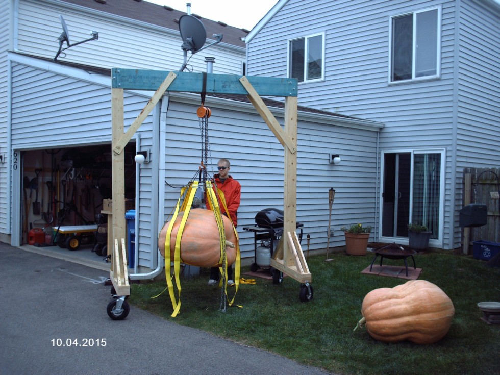 My brother, Benjamin helped me bring my kins home from the patch. I built a gantry crane with a hanging crane scale to lift my gold. The one on the right is Terminator, weighs: 438 Lbs. 13% heavy, Est. was 388 Lbs, OTT: 259". The one on the left is Rocky, weighs: 504 Lbs. 1% heavy, Est. 499 Lbs, OTT: 282.75". These kins are my very personal best. I wonder what next year will bring! : )