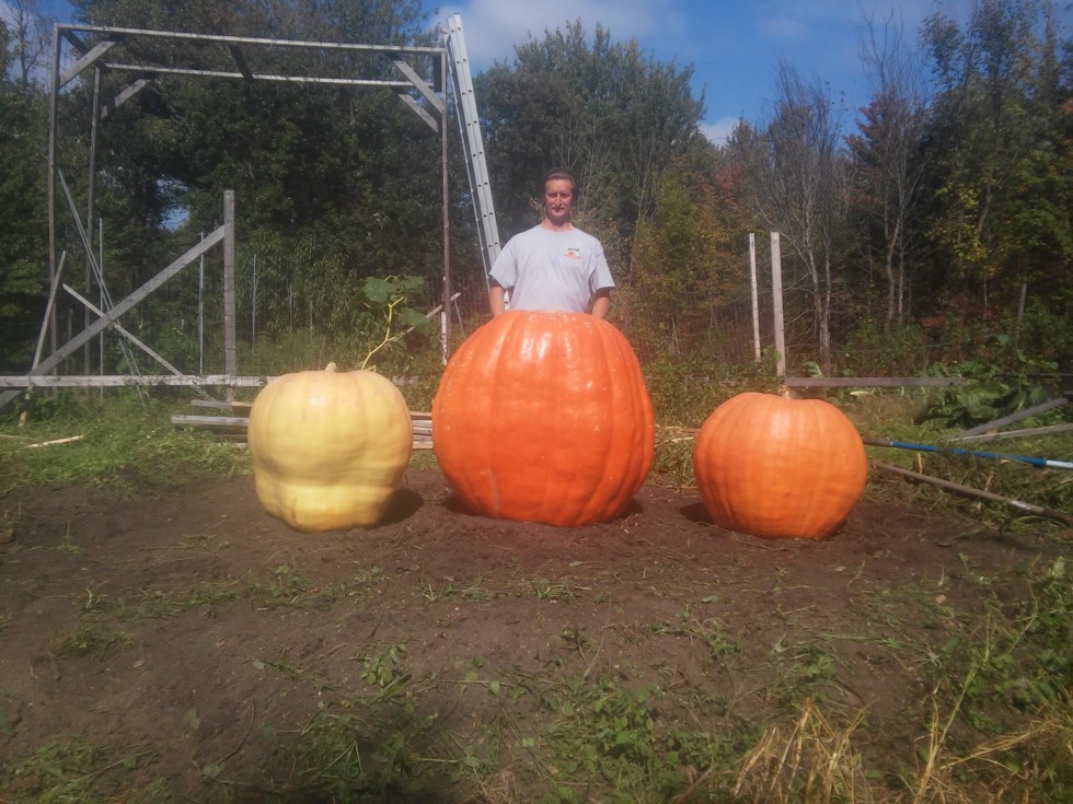 Pumpkins turned out prety good since i gave up on them in early june after we got 5" of rain ! The plants got stunted swimming in mud so i saved my fertelizers for next years plants. I just let nature take care of them this year.my big one weight was 586 lbs. And the seed was a 559 Fraley.