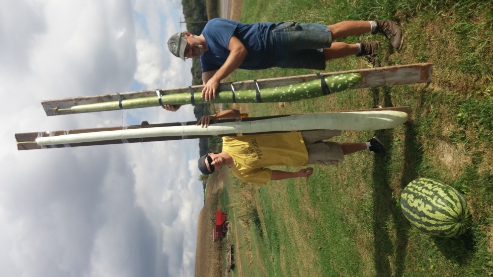 The long gourd on the left fell and broke befor it's weigh off. So sad. But had lots of seeds and was still growing!