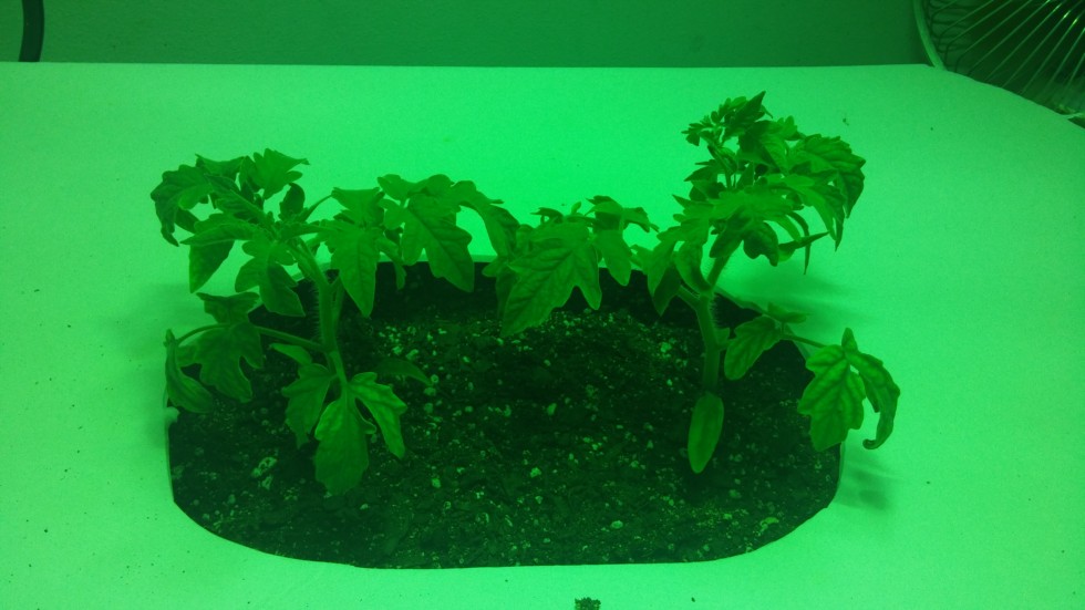 My indoor tomatoes are on fire with growth! This pic is 6 days from the last pic. At first I saw some yellowing in the first true leaves, it might have been that the root balls were to wet for to long after the transplant into the new bin, but I also thought Mag deficiency so I sprayed with Epsom salt and a little fish. They haven't got any more water since the transplant and the next water they get will be from the bottom so the roots get down all the way. I'm happy,but now I have to decide which plant to keep. Hmmm. It will be hard to pull one. I think I will pull the one one the right and stick to my plan.