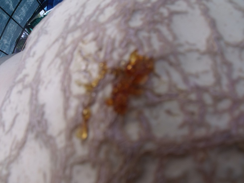 this is what the sap looks like. it is my biggest fruit, but that's the way it goes. at least i should get some seeds out of it;