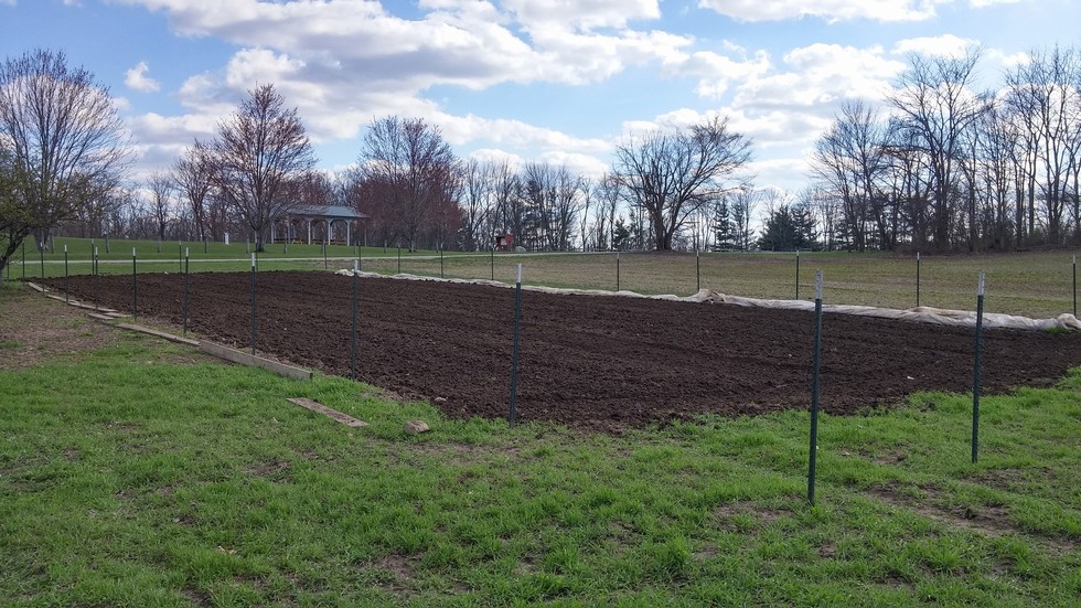 Patch Tilled. Fence posts up.