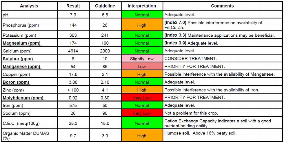 Last but not least, the 150 patch. Boron is bang on as per reccomendation. With such high levels of Calcium (from lime) the pH in my soil is always going to be buffered up and I guess it's going to take years to rectify this issue.