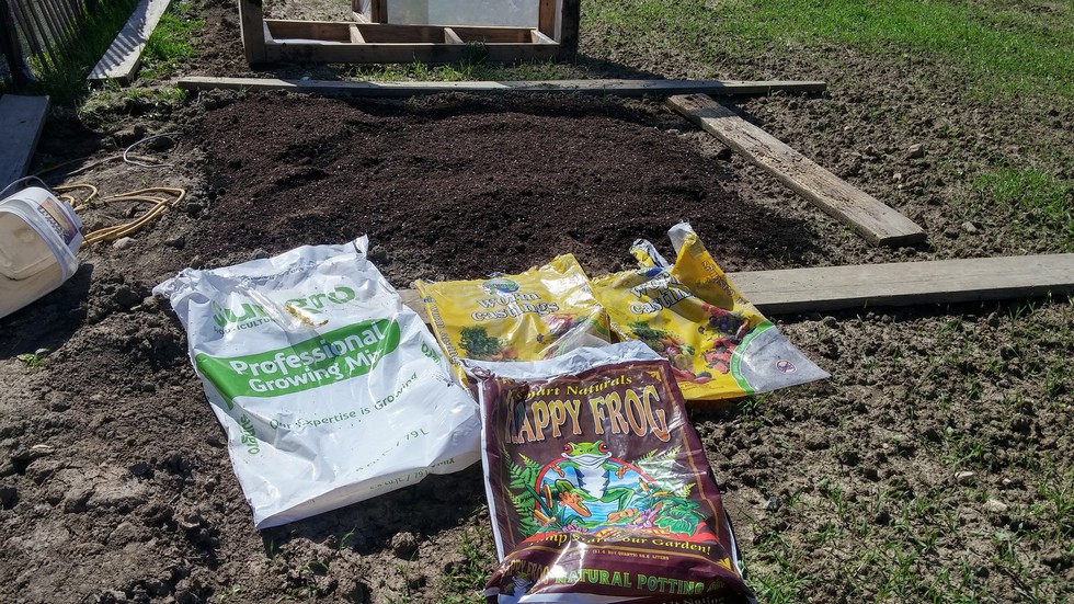 Added some potting soil and worm castings to loosen the soil up at the planting site (also added what I calculated I needed from my soil test using Bryan Langley's soil estimator)