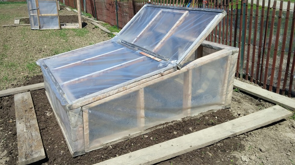 Cold frame up close, auto opener http://tinyurl.com/zyyqocb keeps the inside a constant 85 degrees...opens more when it gets hotter, closes when it starts to cool off.
