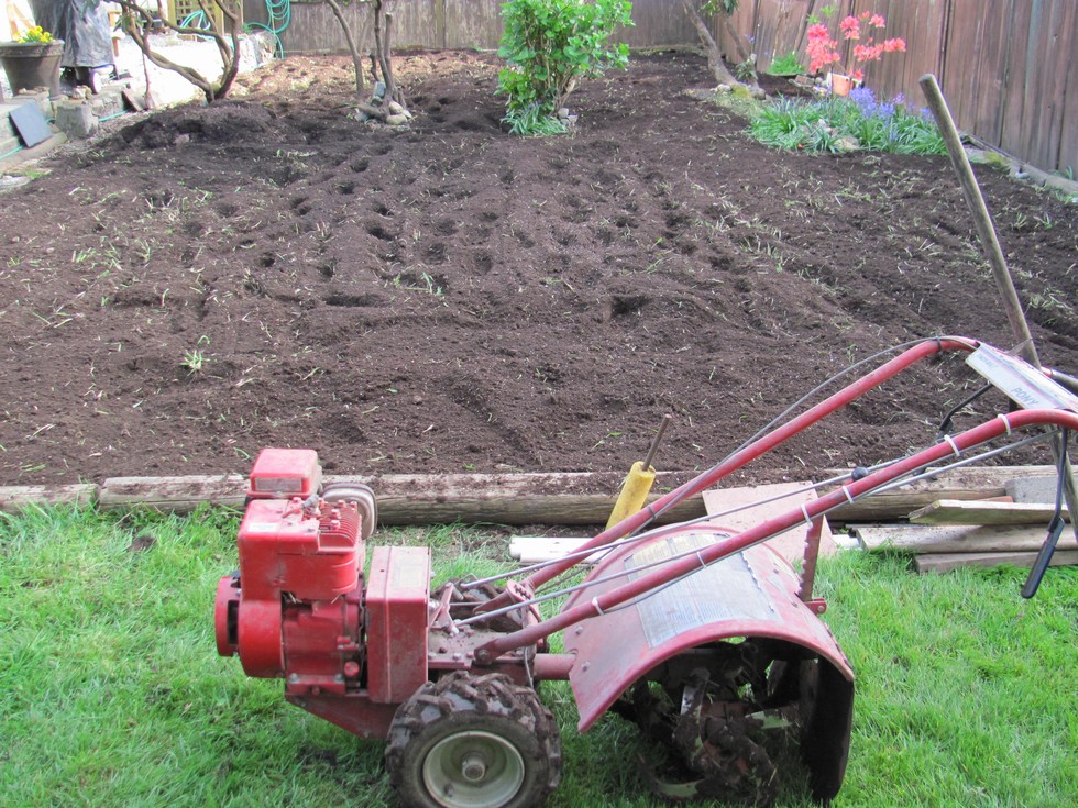 Borrowed Dave's Troy Built Pony, and gave the whole patch a tilling going both ways and getting the patch ready for my hoophouses. Weather has been unreal...feels like we are in California...game on.