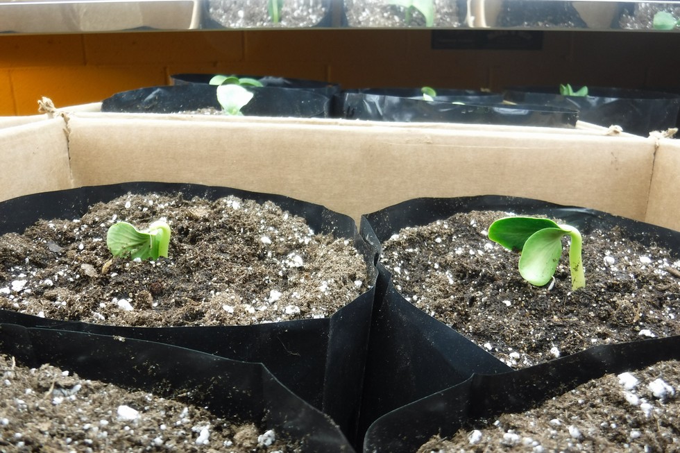 Started 21 plants last Sunday night the 17th of April.21 are in there 1 gallon bags.The melons were started a week earlier & germinated 14 out of 16 also in 1 gallon bags.Will plant next weekend.So they will be in the bag 1 week.Sunny & 55 today calling for 60s most of the week ahead.Not so worried about great temps,just everyday sunshine would be nice. My line up this season 2-1317s 1-1734 Clemenetz 1-1583 Vanderweilen (1947 selfed) 1-1806 Mathison. Jackson yelled & told grandma were going to Canada fishing.lol 2145 McMullen & the 1756 mother of 2145.plus for the 150 contest I will grow the 1059 Vincent Mcgill or the 1734 either way im growing both.I will grow some kins at a farm 6 miles up the road for promotional purposes.Big orange kins for store events.1625 was started I may use the pollen or grow it in the 150 contest.