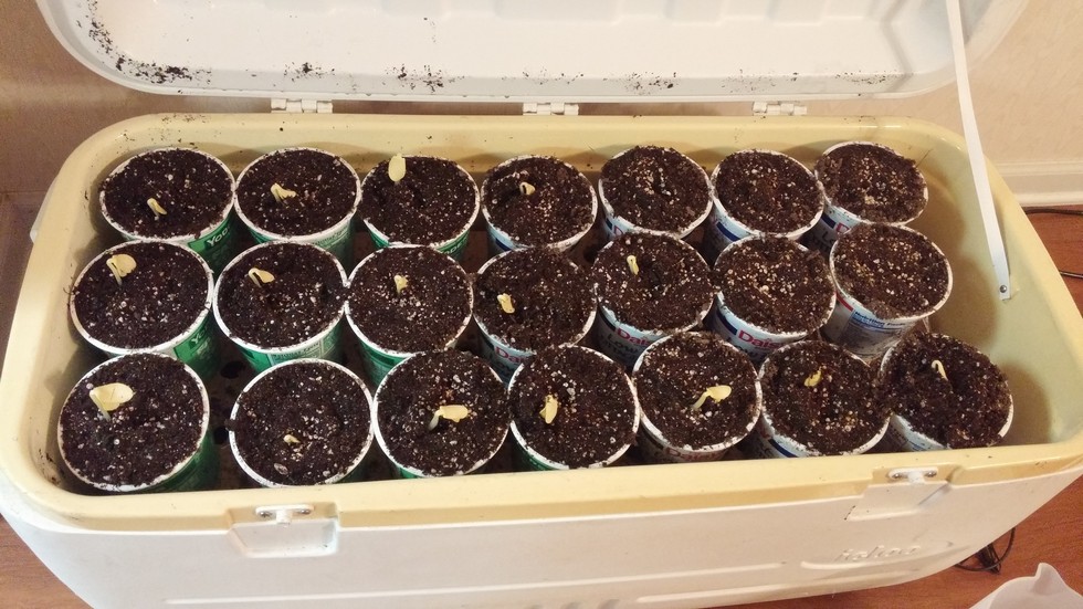 Almost all of the 40 plants I started for the new growers seminar this next Sunday germinated in 3 days. This is the top layer.