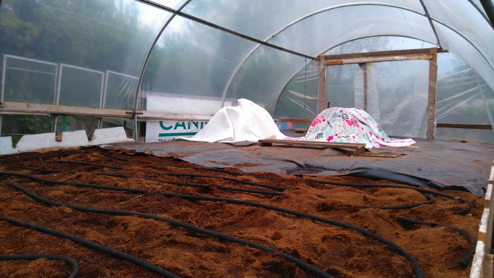 Nights have been cold but but this was expected so I built two little hoops houses to go in the tunnel and cover these with some thick material stripped out of an old mattress