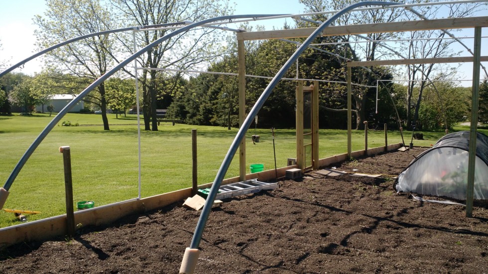 Stupid wind will just not take a break, everything is ready for the screen, just don't want it to blow away. Today I got the last of my PVC pipes for the overhead misters in place. Hoping I don't have to use them but they are there if I need them