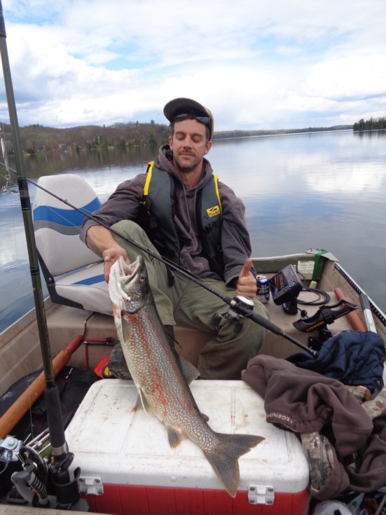 nice 8 pounder laker on a white jig , got to love it
