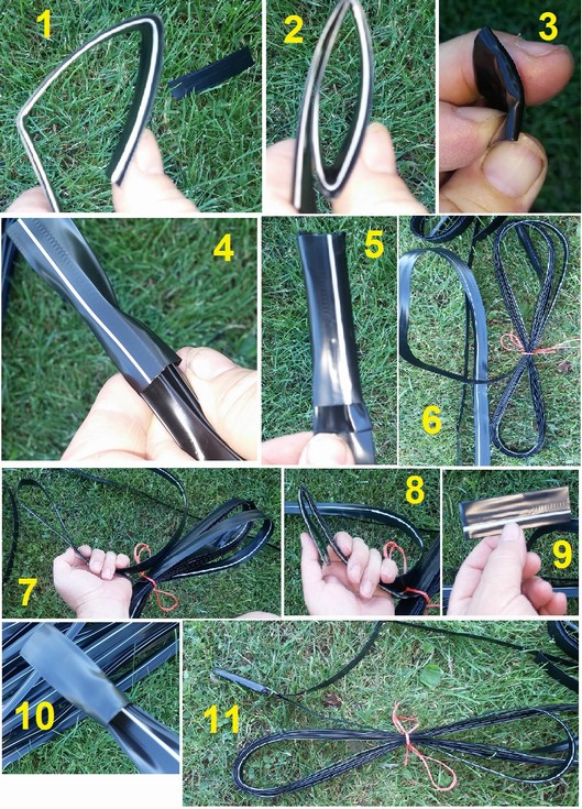 I learned this trick to terminating drip tape from Jerry Rose on an OVGPG Patch tour a few years back. You can use a short piece of drip tape to make a sleeve and slide over the tape after you've bent it back on itself a couple times. First I Terminate the end (Steps 1-5), Then I coil the excess up (that will eventually be going past where the plant is now) and tie it. Then I terminate in front of the spool to stop the water where I want it (just past where the plant is currently growing) -- Steps 6-11. I uncoil and move the early termination point as the plant grows. This is the easiest way I've found to lay out the drip tape because I put it over the vines. If I lay it all out completely over the patch I have to move it to till or weed or hoe or move the wind fence etc. I invariably trip over it a doxen times. And mostly the vines grow over it and I have to move from under them later. I don't like it under the vines because when it pressurizes it will press up against the vine and if the vine is held tight by roots it restricts the water flow down the line.
