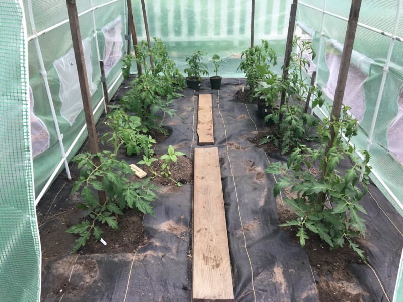 Giant tomatoes are growing ok but not liking the cold.