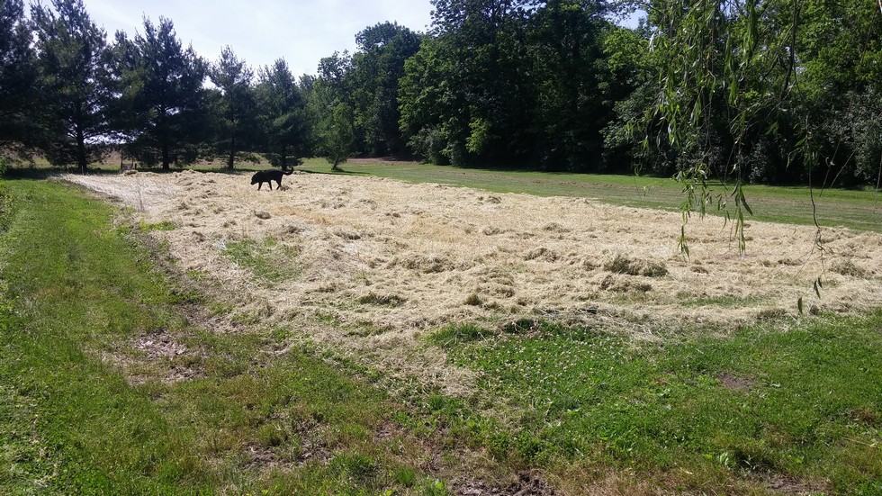Got the 6.5 ft of rye on last years patch cut and ready for tilling and replanting. Since I'm a little behind on it, I will probably plant oats until it cools off some and then plant the clover I normally plant.