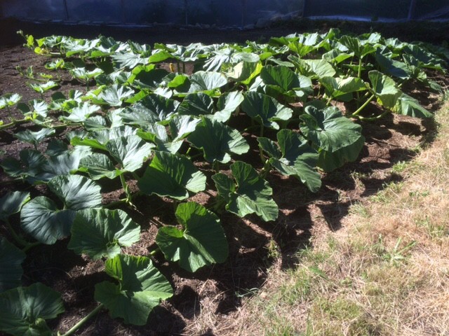 Better weather today. Pollinated another pumpkin on a secondary vine. I don't know if it's going to work, everything so damp still.