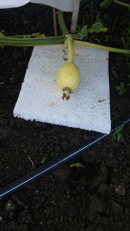 4 DAP (Days after pollination). This one got Anthesis applied yesterday. Still shiny, bigger around than a baseball, nice long football shape and a very long stem.