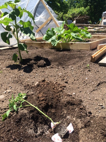 They got buried deep....the sunflower came up under the hoop house before the plant went in... Didn't have the heart to pull it...should be a good one