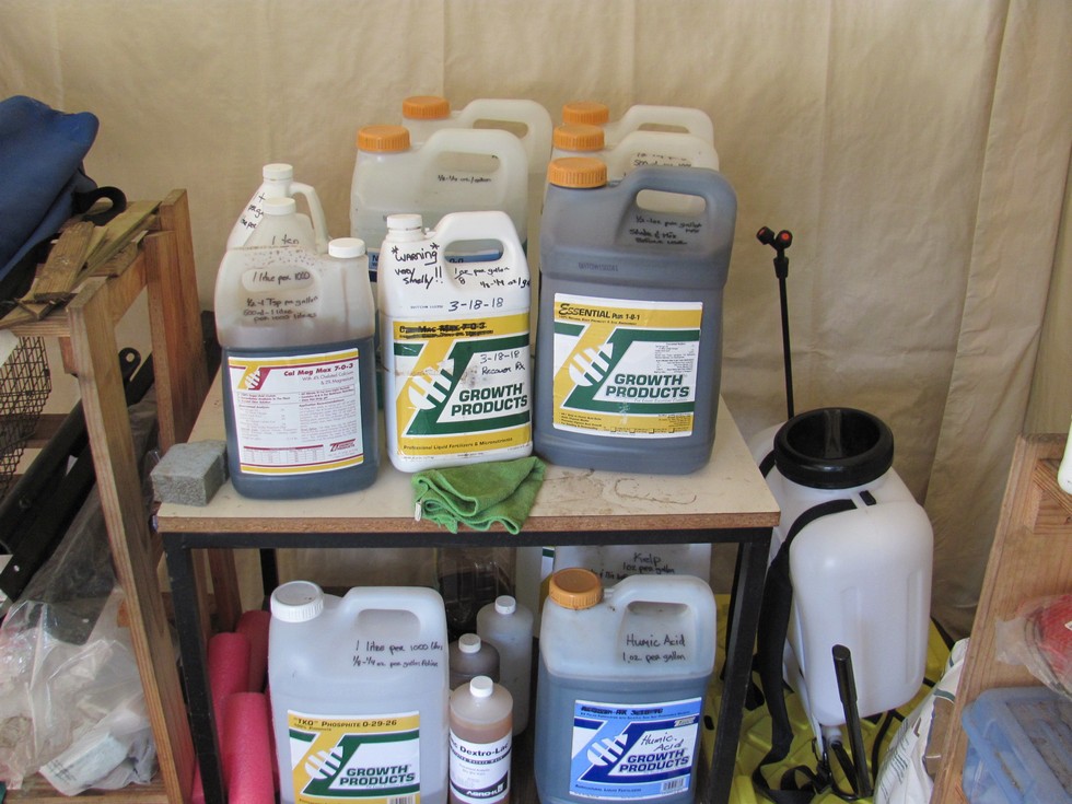 Richmond Dave and I were talking about all the potions and notions and concoctions that we throw at our plants and into our soil...I think he said he had 16 (ya right Dave) separate things that he uses in his rotation. Here is a few of my liquids that I use, and then there are all the powders and bionutrients, kelp, humic, fulvic, lithovit, calcarb,mycos, just to name a few more.