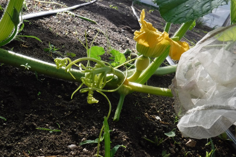 Pollinated the 1317 X 2145 McMullen this am. Last one didnt take.aprox 19 feet out.Lets see how fast one grows with all this plant behind it