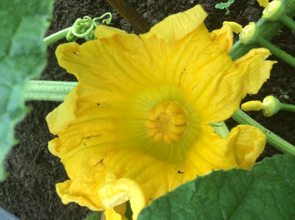 Finally, a perfect female blossom on the main vine of the 2008 Neptune. Pollinated this morning ( July 8th ) around 15-16 ft, 5 lobe. I do not like the shape of the 1st one that is at day 11 today. It has good size , but had seeds in blossom and had deformed lobes, very surprised it even took.