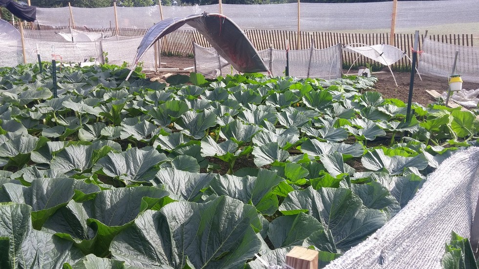 Here is the 1921 plant. One going to pollinate on the main tomorrow at 35 ft. Have a few set on the sides about 22 ft from the stump, but if this one on the main takes. High only predicted to be 83 tomorrow. Still 101 days till Pumpkin Show. Fingers crossed, Wish me luck.