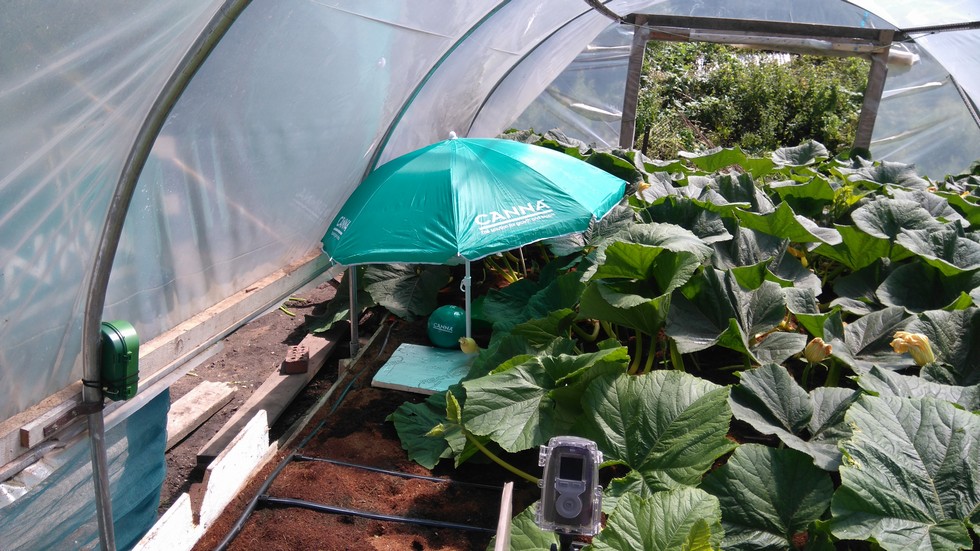 Finally!... a pollination on the 854 Frei in coco. It's on a secondary vine so of course I'm not happy and it's really close to the side of the tunnel. Still, I know my limitations and with such crap weather at least I don't have to worry about growing one so big that the side of the tunnel becomes and issue. 854.5 Frei x self