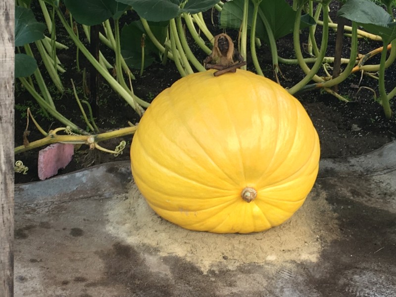 Here is the 554 Young x open. Unfortunately we took this open at 8 feet as we had pollination issues with 2 behind it. Roughly 24 days and a cc of 66 inches. We will pick this one for our early fair if she stays together. Great shape and color. 554 Young is 993 Vincent McGill x 907 Young (1059 x self) very similar to our 777 cross.