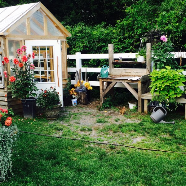 Lots of rabbits showin up...(under the planting bench)they stay away from the plants for the most part... They love sunflowers...I think they like me too...