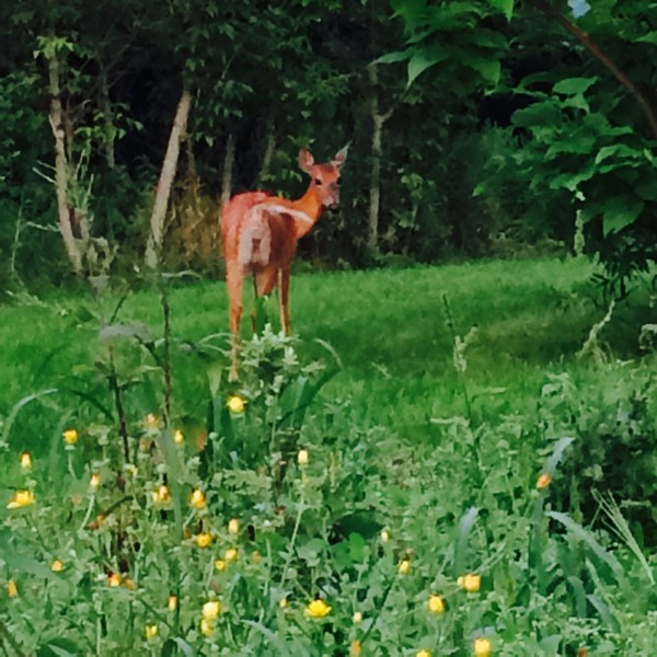 A little too close to the gardens big momma ....see you in a month or so ...(under my tree stand)....