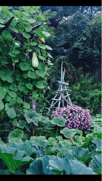 ....So is the pear gourd...are these even meant to grow on a trellis??... Should I tie it up?... I saw pics online of some 60+lbers...there's a bunch of them up there...too funny