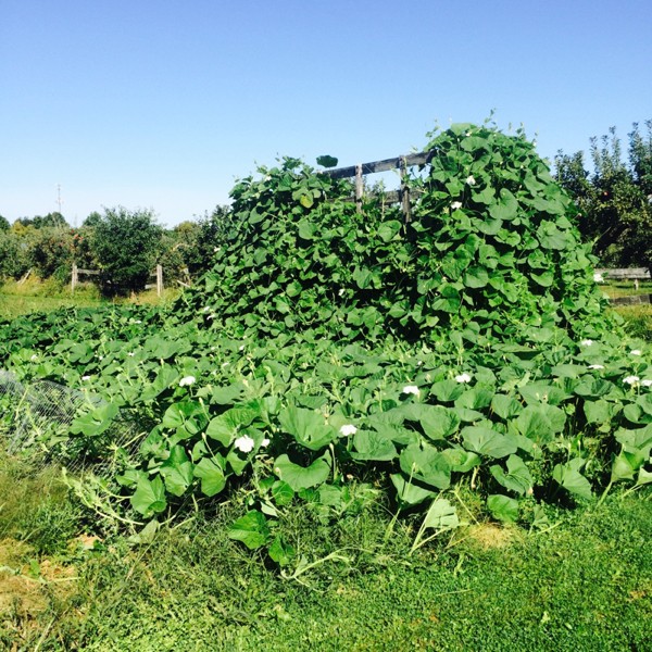 The long gourd plants still look fantastic and have just about swallowed the hay wagon..( planted with wallace pumpkin mykos)...there's a few that I can see but I'm sure there's got to be some snakes in there ...