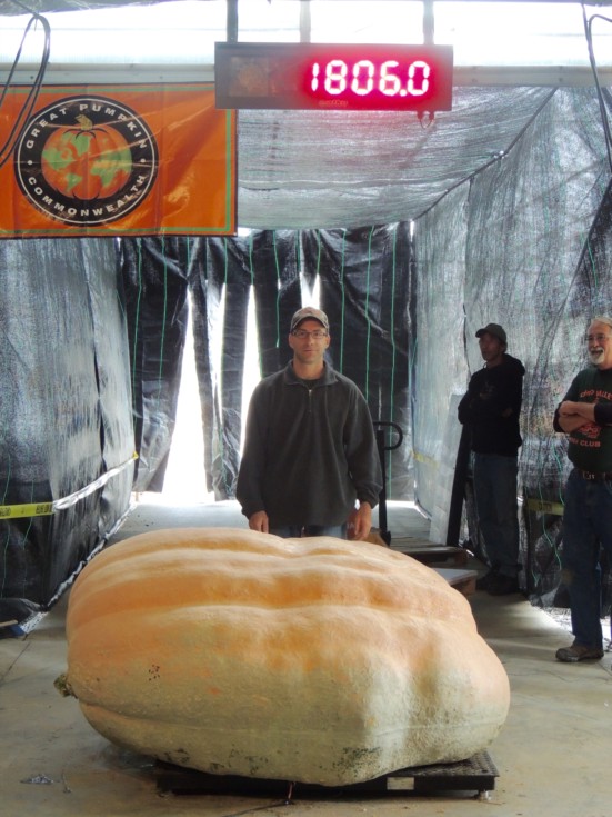 Im not sure if the weight is showing, but it went 1805.5. A great end for a great year. A big thanks goes to my wife Wendy and my kids who help me with covering with the blankets and closing of the hoop houses. The pumpkins would not have gotten to the size they got with out them helping.