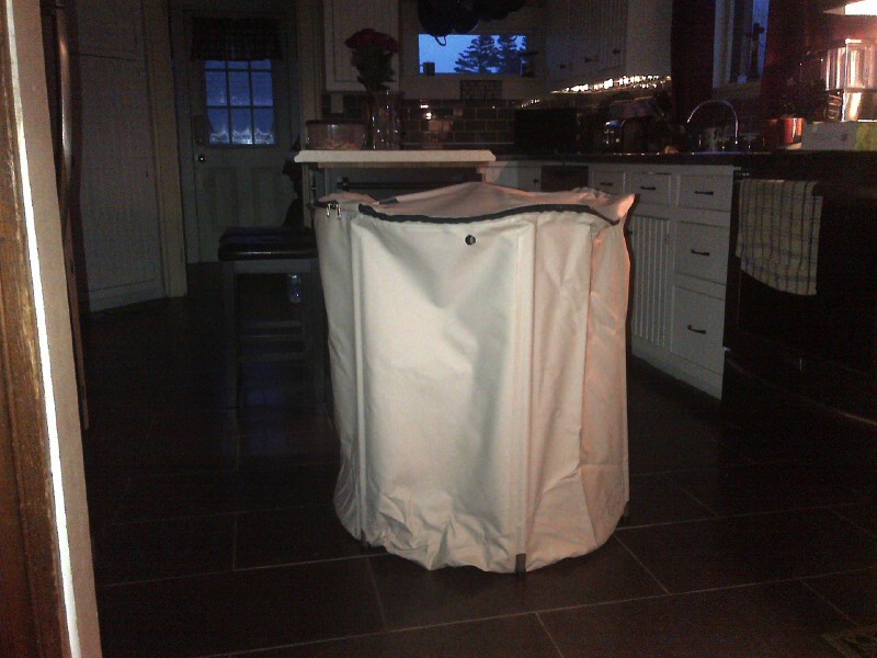 Another angle, believe it or not, it holds 100 gallons. The plan is to build a platform by the barn and let the rain fill it up. I'm on town water and I don't want to use it if I don't have to.