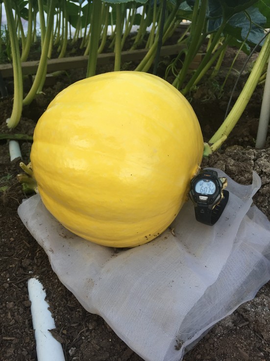 793 Toftness about 30" circ....younger one about 2 feet down the vine, maybe 12"....time to cull or cut bait? Gently slid the plywood under this baby...Avoiding the oh sh?t moment next weekend when it's too big ;). And I'm encouraged it decided to set next to the pvc pipe...only the good ones set in inconvenient spots...