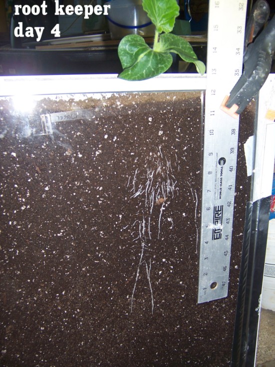 One of the Root Keeper plants has a 13 inch root, another has 12" roots and the two plants given plain water have 11" roots, I lost the pictures somehow of those. Appearance wish I don't see a difference in the roots other than length