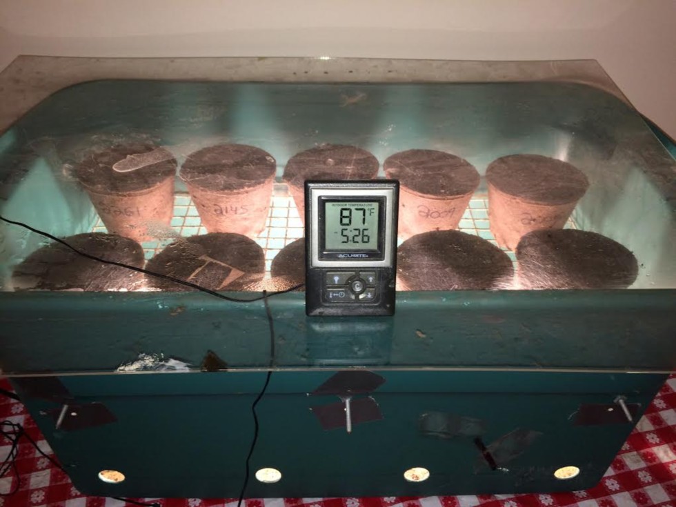 Seed Starting mixture is amended with Pumpkin Pro Mycorrhizal Inoculant and Azos Nitrogen fixing bacteria. I also "sprinkle" a little pumpkin Pro and Azos right where the root will emerge ensuring fast direct root contact. Pots are placed in germinating box at 85-88 degrees.