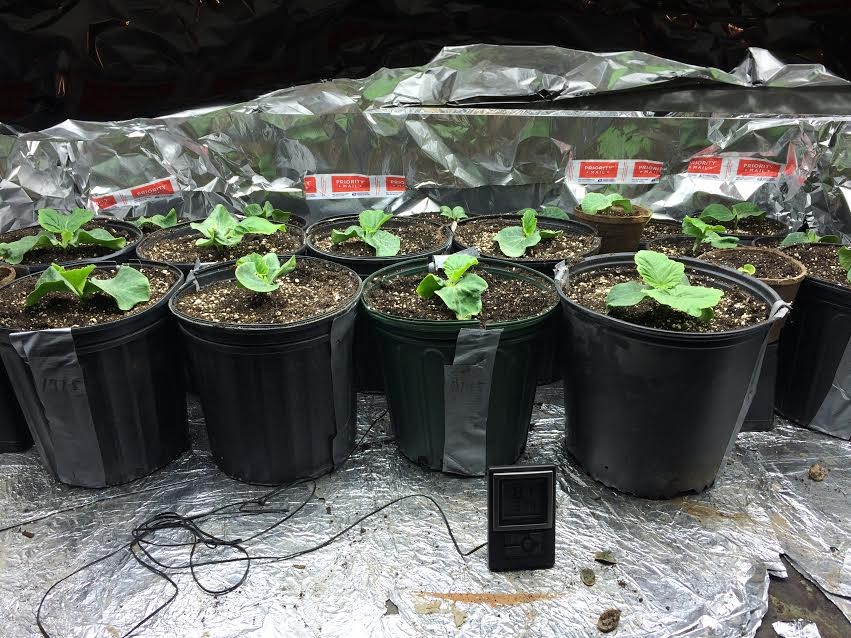 Seedlings under the lights on a cold wet day, 10 day forecast looks a bit below average. The 2 gallon pots allow me to hold them a bit longer if I have to.
