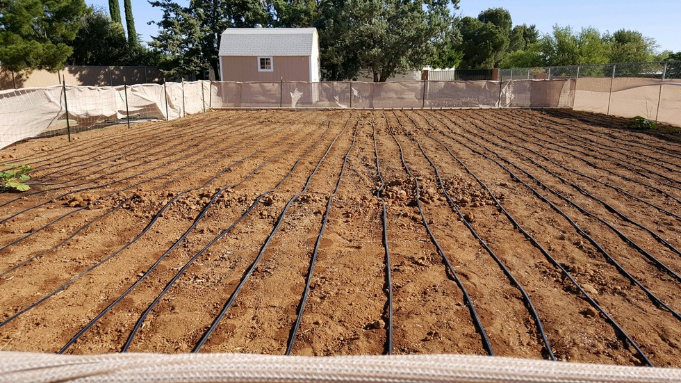 Drip tape in. Went with 15 on center pvc pipe. 12 inch on center for tape low flow. Only been in for a couple of days looks like it is going to work.