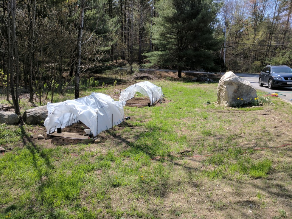 Here's a photo of Patch 2 a couple of weeks ago. Patch 2 had a cover crop of winter rye planted in the fall, and was amended with leaf compost and lime.